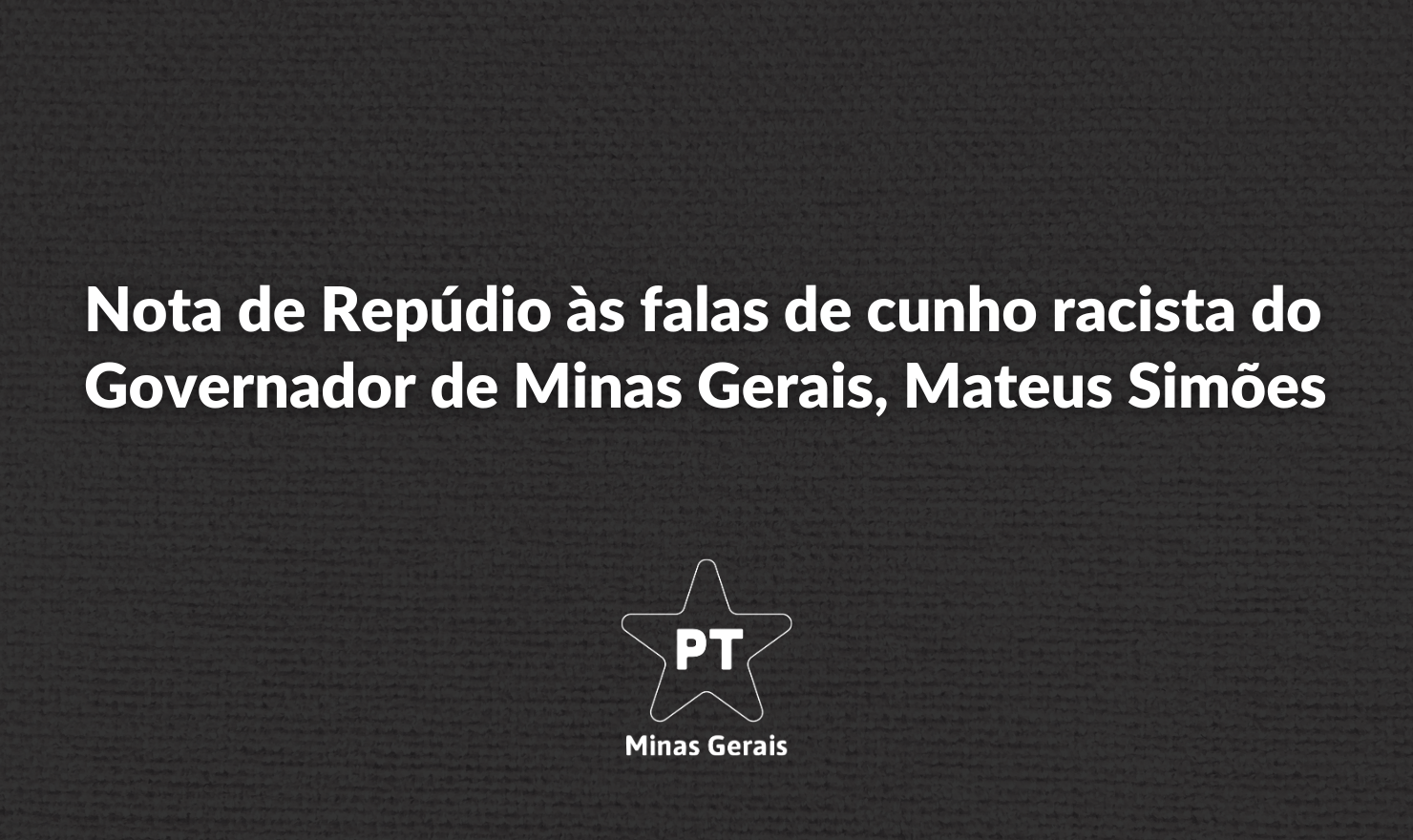 O Partido dos Trabalhadores de Minas Gerais (PT-MG), por meio da sua Secretaria de Combate ao Racismo e da Secretaria de Mulheres, repudia veementemente o uso de expressão de cunho racista pelo atual Governador de Minas Gerais, Mateus Simões, ocorrido durante o evento de entrega de Medalha da Inconfidência, no último dia 21, em Ouro Preto.